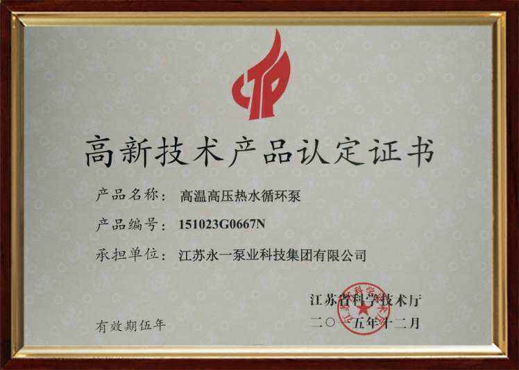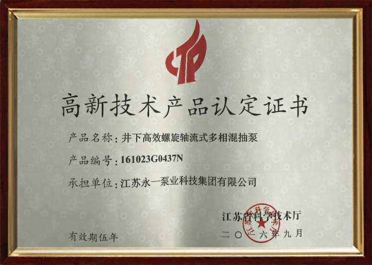 高新技术产品认定证书